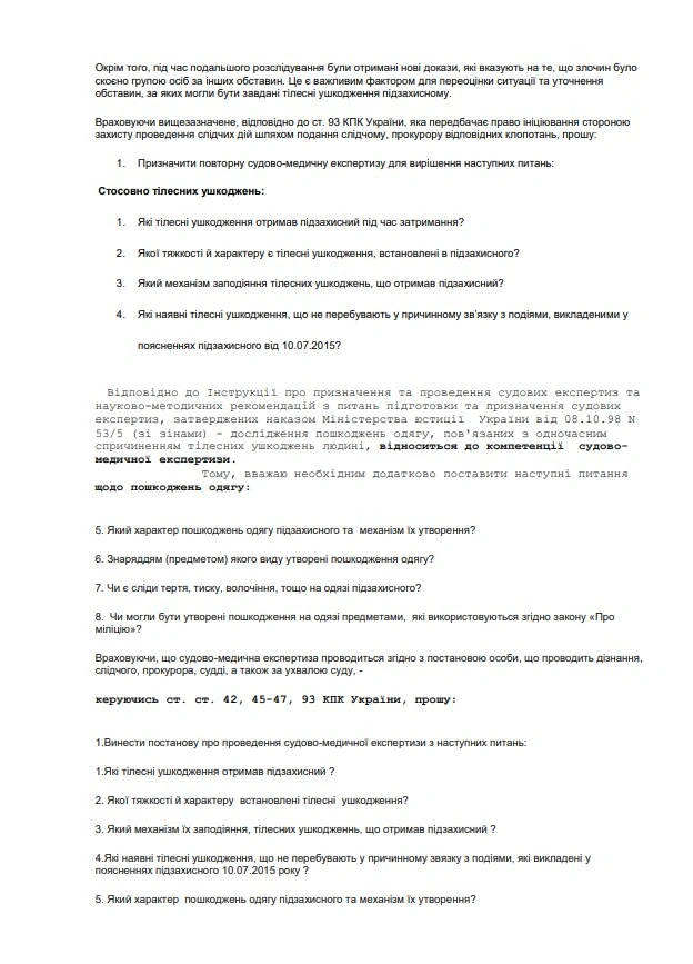 По справі, адвокат написала клопотання про проведення повторної судової медичної експертизи.